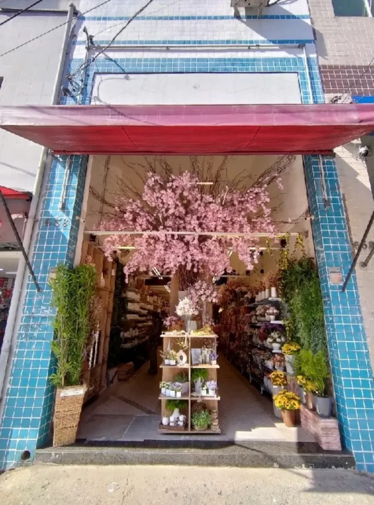 Arranjos e flores artificiais para ambientação e presentes, com itens decorativos diversos.