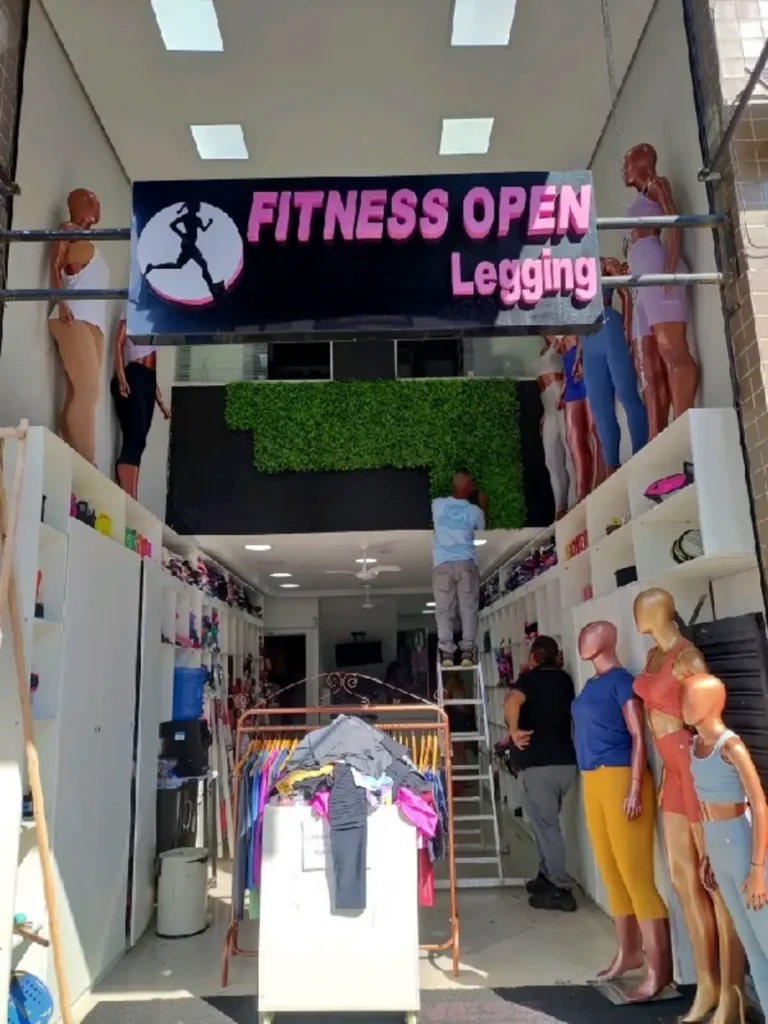 Loja de roupas fitness voltada para mulheres,com leggings,tops e peças esportivas que unem conforto e estilo.