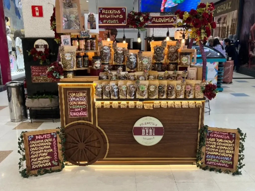 Quiosque de alimentação para aquela pausa no meio das compras, com opções práticas como granolas e lanches leves. Funciona bem para quem quer algo rápido e fácil no Mega Polo.