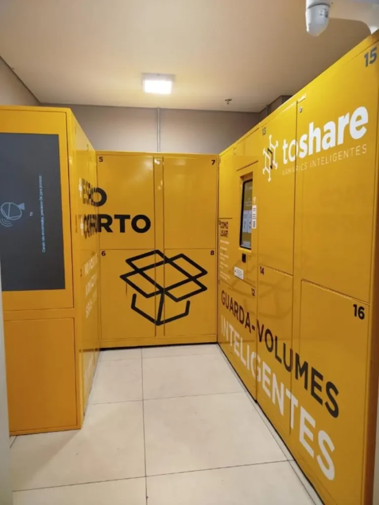Serviço de guarda-volumes com armários inteligentes, útil para armazenar sacolas e circular com mais conforto. Indicado para quem faz compras em quantidade ou está em trânsito.