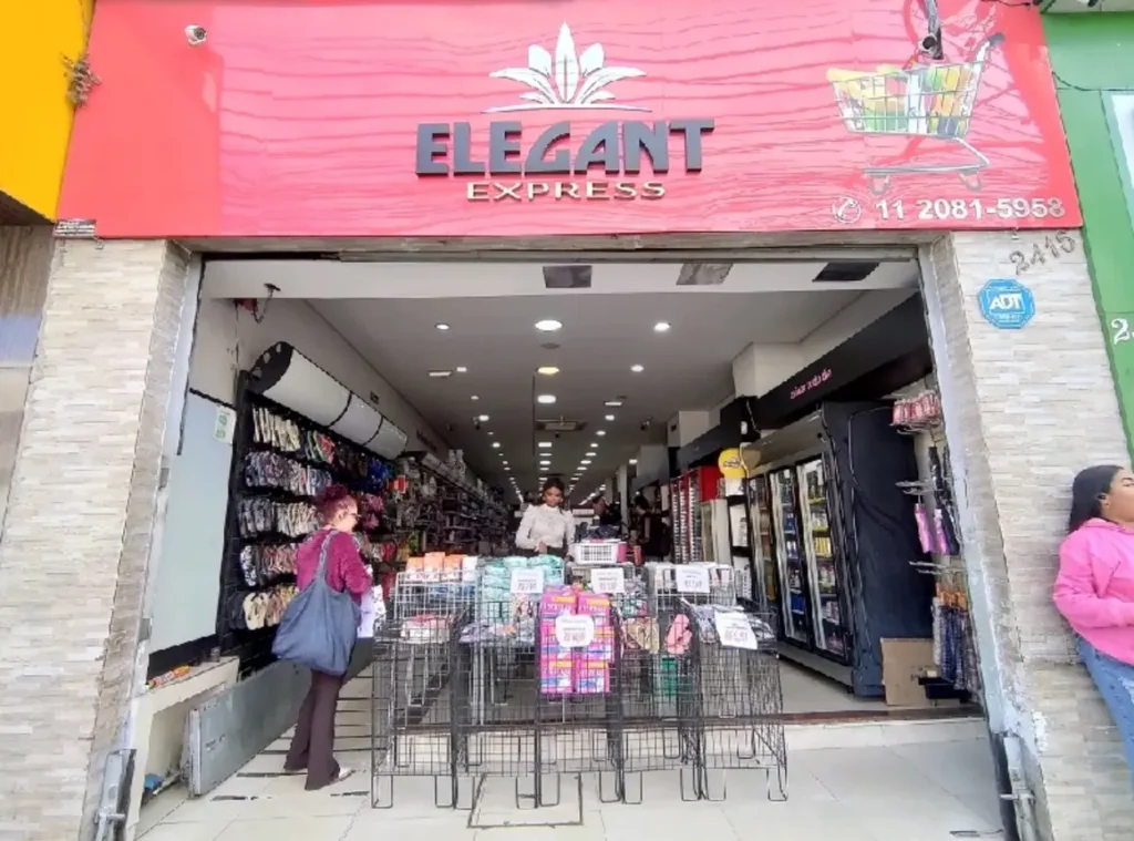 Lojas de utilidades e presentes com mix amplo; inclui itens de mercado e guarda-chuvas.