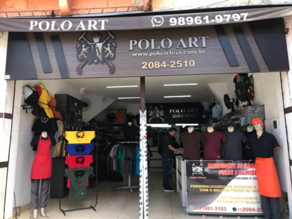 Atacado e varejo de camisetas e uniformes (feminino e masculino), com provador para apoiar compras no varejo. Boa para fardamento, eventos e reposição de peças de equipe.