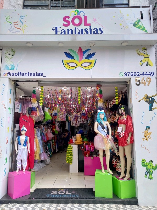 A Sol Fantasias é especializada em fantasias,presentes e artigos de festa para o público infantil,adulto e eventos temáticos.